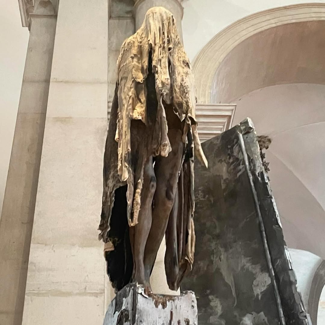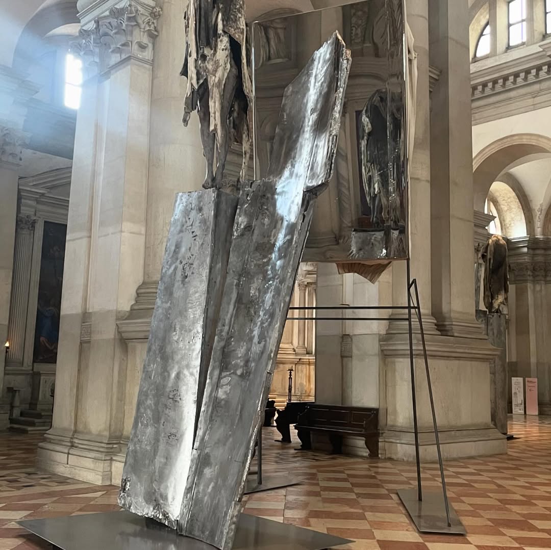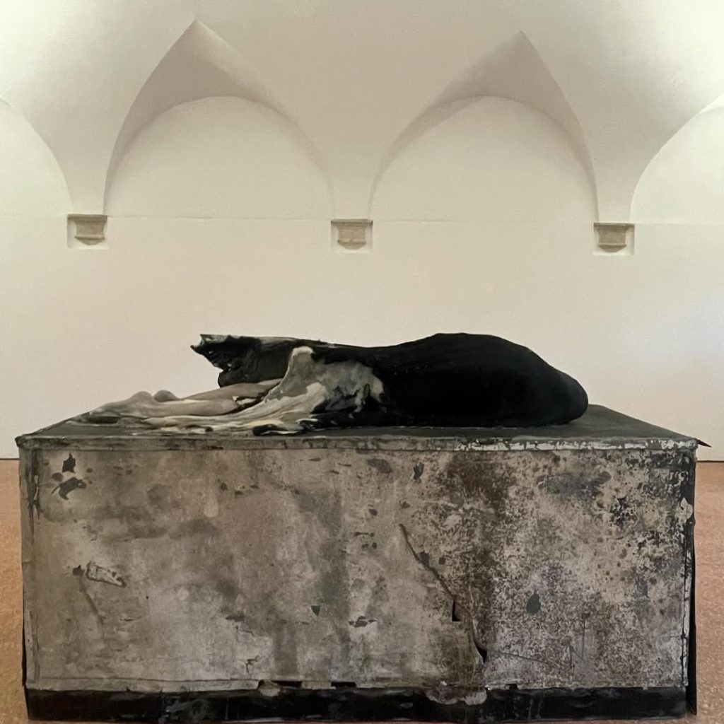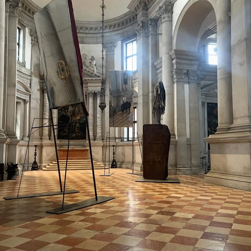 L’installation comprend également une œuvre à grande échelle dans la sacristie et des sculptures murales dans la galerie du monastère.