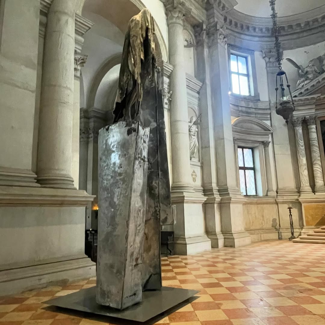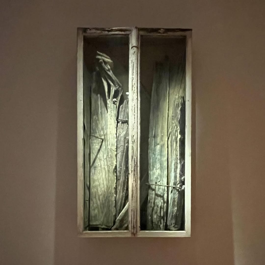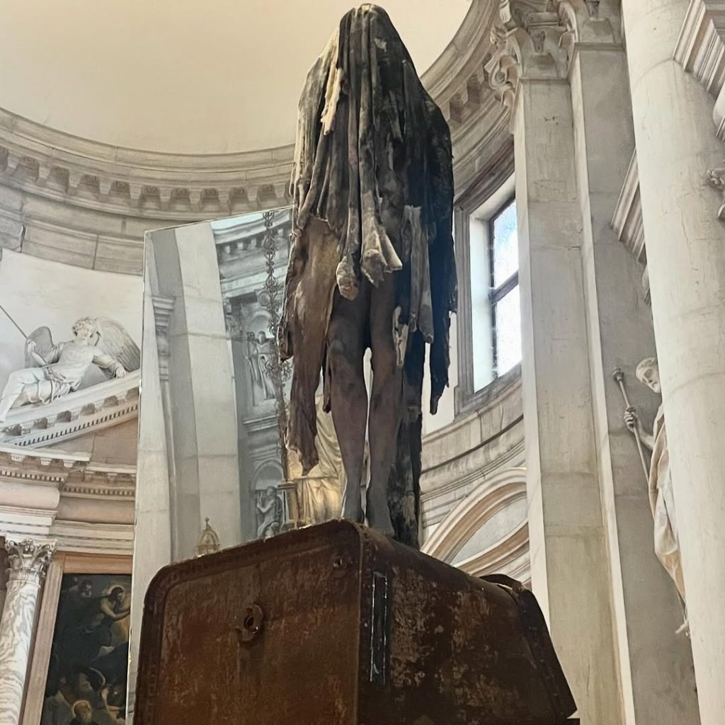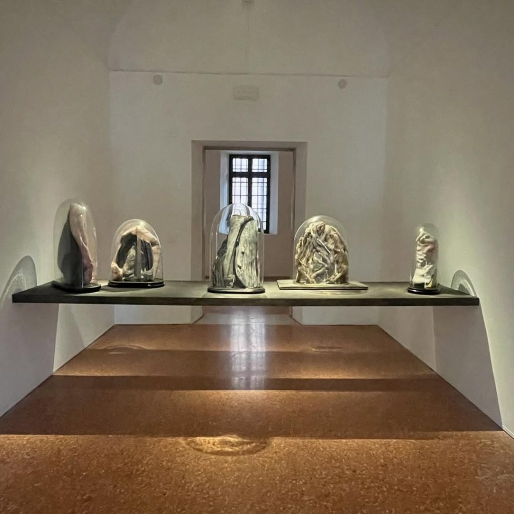 L’installation comprend également une œuvre à grande échelle dans la sacristie et des sculptures murales dans la galerie du monastère.
