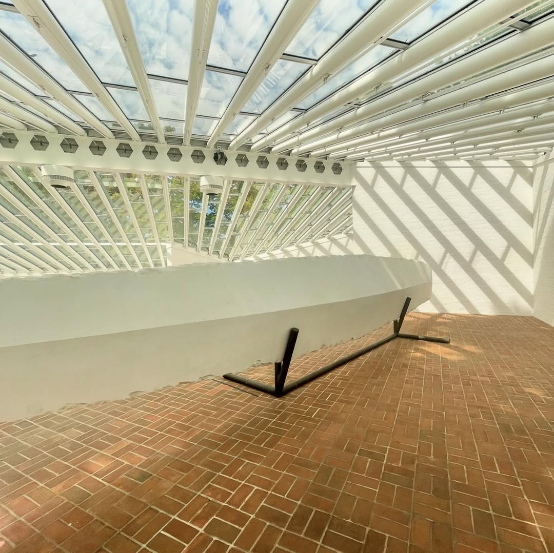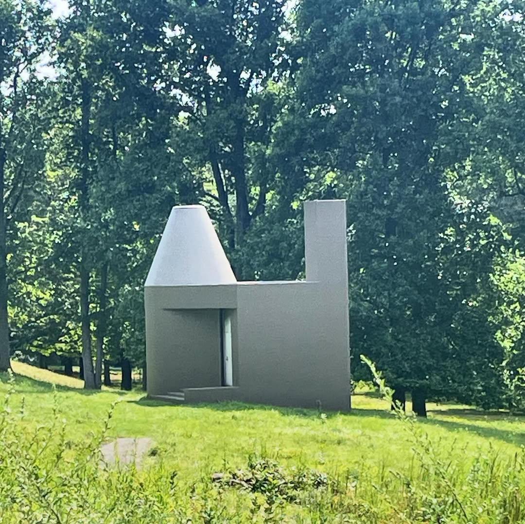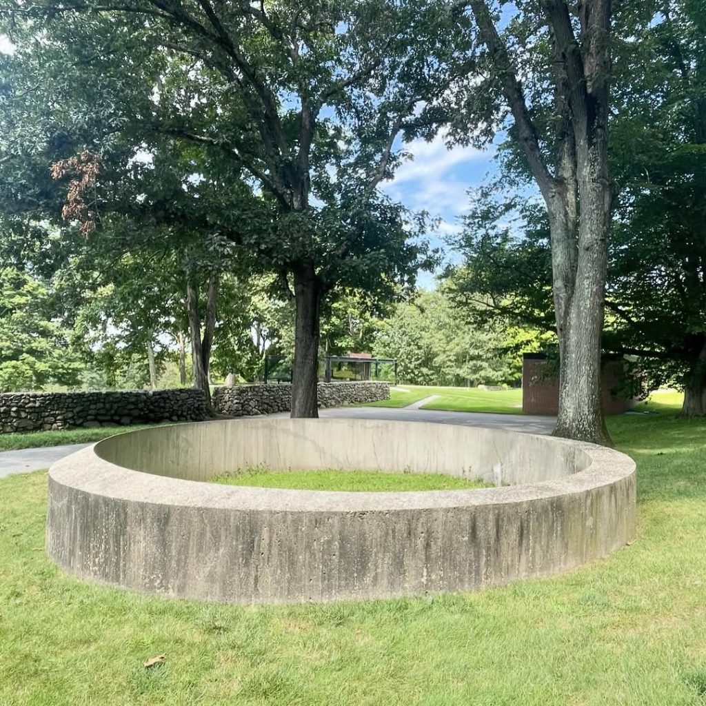La Glass House (1949) est célèbre pour ses murs transparents qui intègrent la nature dans l’espace de vie. À proximité, le Studio de Johnson offre un espace de travail isolé et propice à la réflexion. La Brick House, une maison d’hôtes solide et fermée, contraste avec l’ouverture de la Glass House. Le domaine comprend deux galeries : la Painting Gallery, dont les murs mobiles présentent des œuvres d’artistes tels que Frank Stella et Andy Warhol, et la Sculpture Gallery, où la lumière naturelle met en valeur des pièces de Michael Heizer et d’autres artistes. Parmi les autres structures, citons Da Monsta, le Pavillon dans l’étang et le Monument à Lincoln Kirstein.